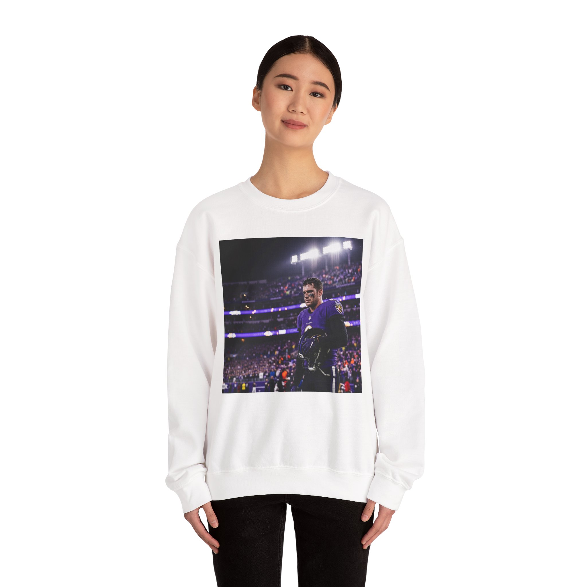 A soft, roomy crewneck that carries the thrill of the stadium into everyday life. This medium-weight sweatshirt drapes with a relaxed, classic fit and a clean neckline, while durable double-needle stitching keeps it holding up wash after wash. The front sports a bold, photographic print that feels like a snapshot from the stands — a quiet reminder of nights under bright lights and the people you cheered with. Wear it on cool evenings, during travel, or when you want a comfortable layer that still says something about where you’ve been and what you love.